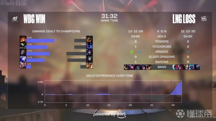 第31分钟,下路团战,Light拿到三杀,WBG打出0换4,随后推上高地击杀GALA后顺势拿下比赛,13-12。